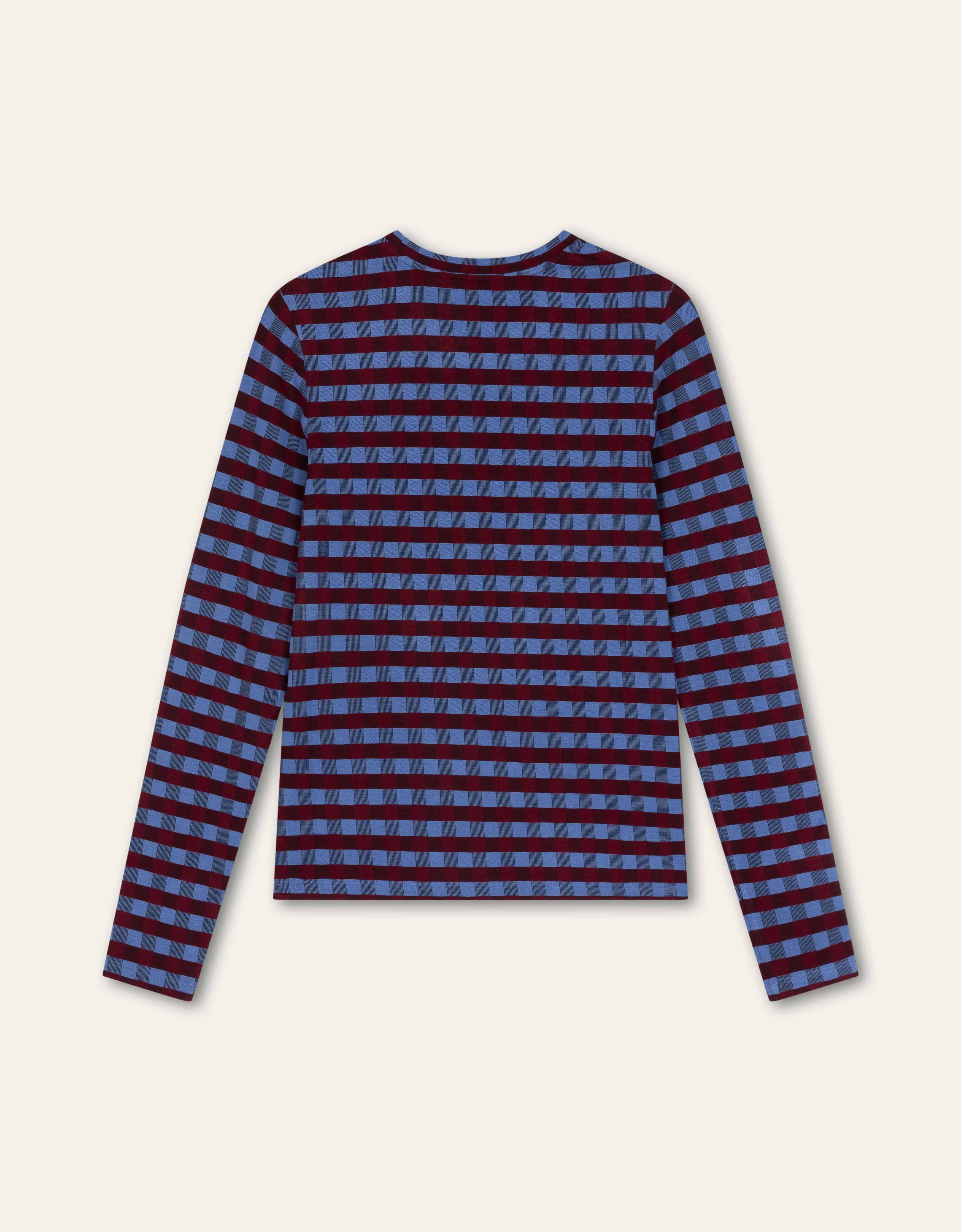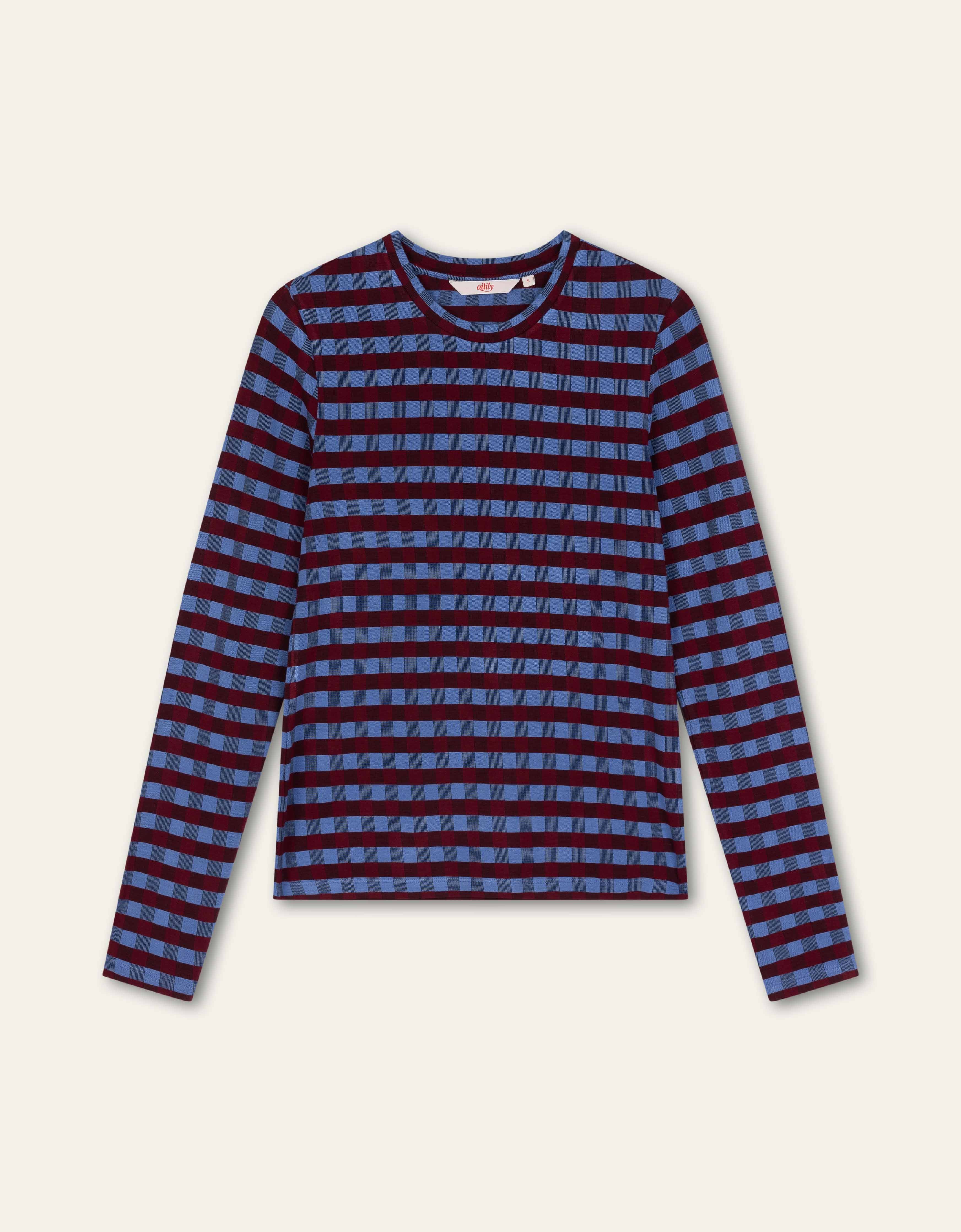 Een speels onderlaagje dat gezien mag worden. Deze fitted top heeft speelse ruitjes die we Sijtje Check hebben genoemd.