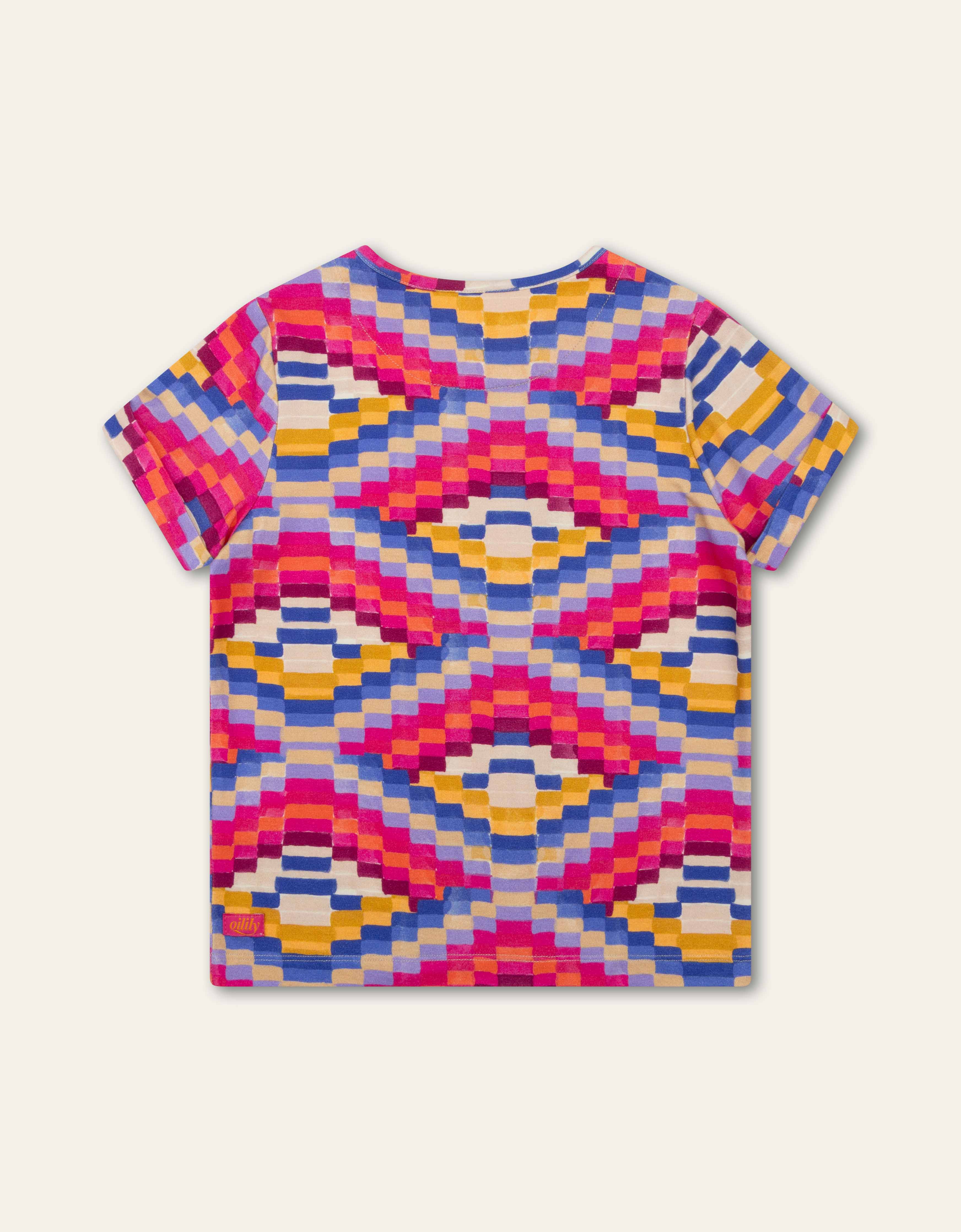 Superzacht T-shirt van 93% viscose en 7% elastaan, met een print geïnspireerd op de eeuwenoude stepwells van India. Deze bijzondere trappenputten vingen regenwater op en waren ontmoetingsplekken voor vrouwen — een verhaal van schoonheid, gemeenschap en inspiratie in elke print.