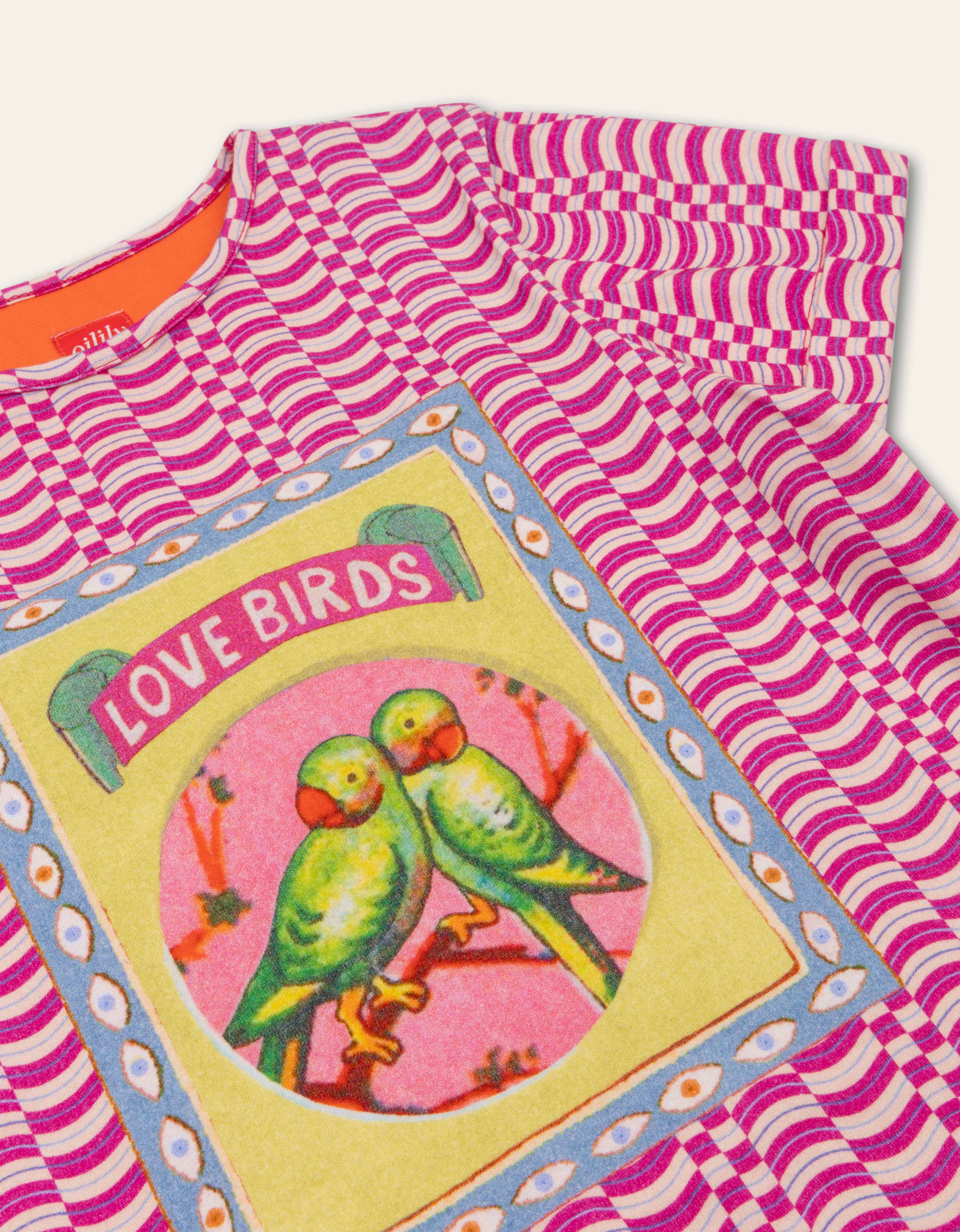 Zacht t-shirt met lichte stretch dat je het hele jaar door kan dragen. Met love birds uit onze Flaming Symbols print.