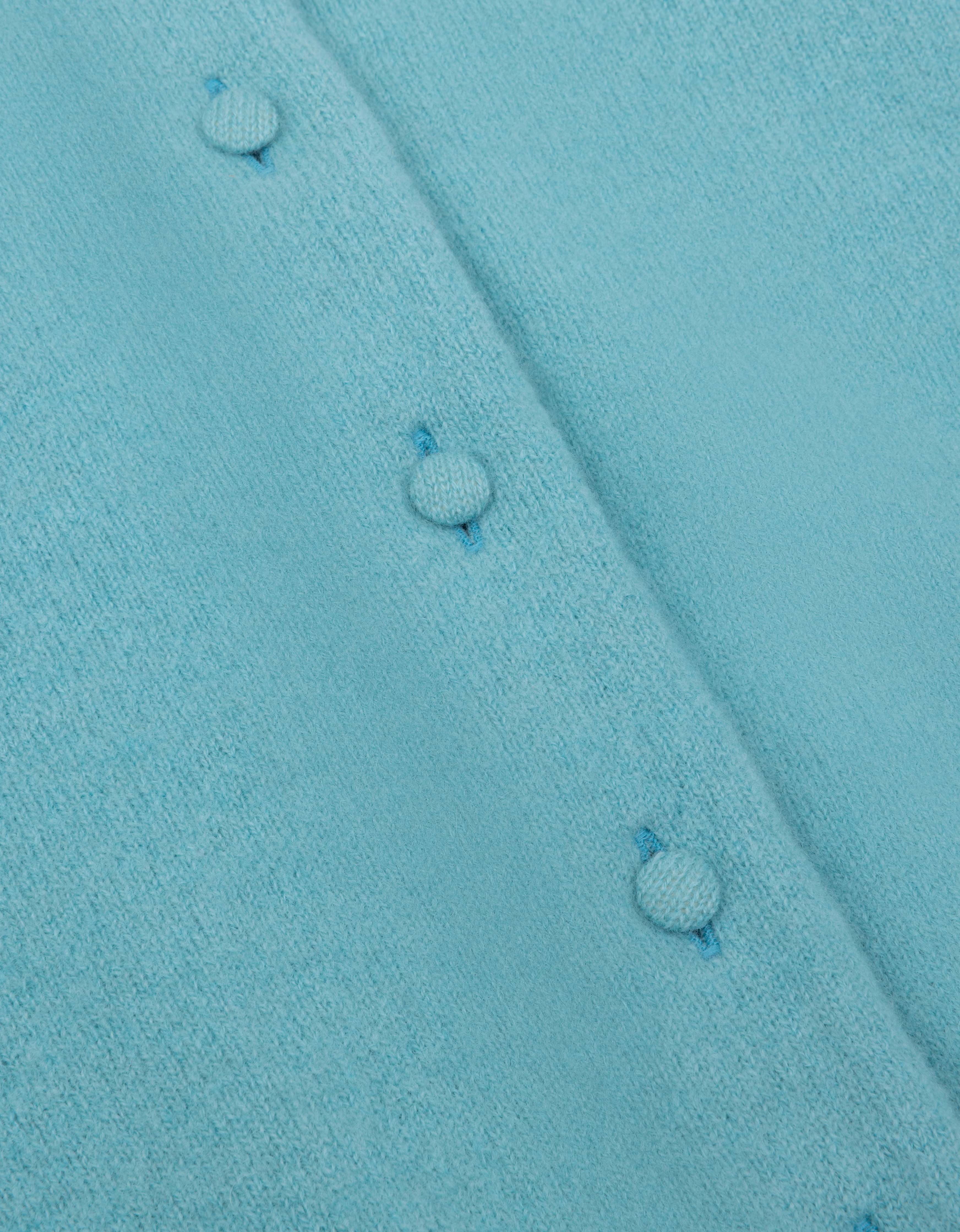 Lief vest met beklede knoopjes. Op de schouders en aan de achterkant gebreide details in reversed Fairisle stripes met een speels patroon.