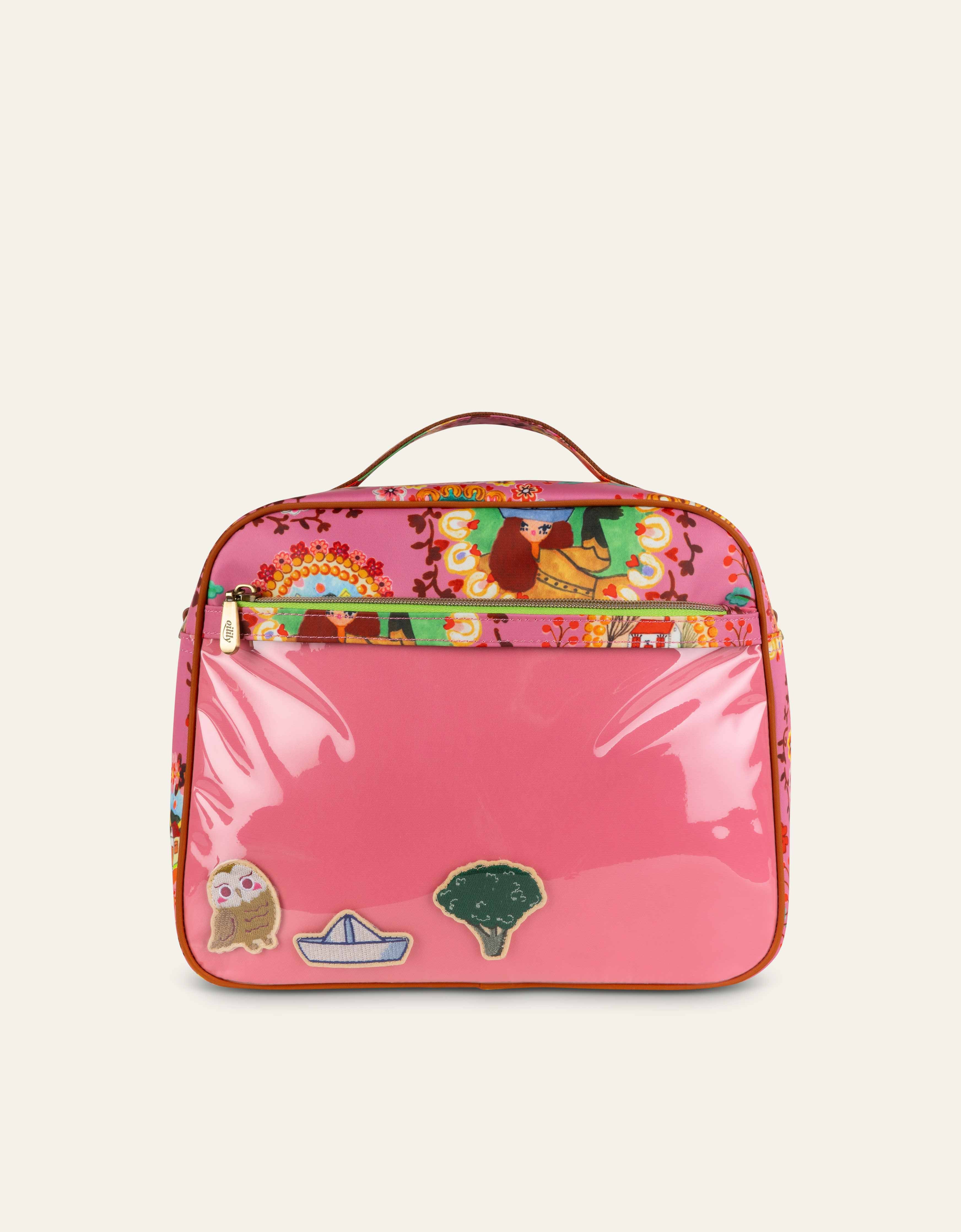 - Achtervak met rits en klittenbandsluitingen die op de klittenbandsluitingen aan de voorkant geplakt kunnen worden