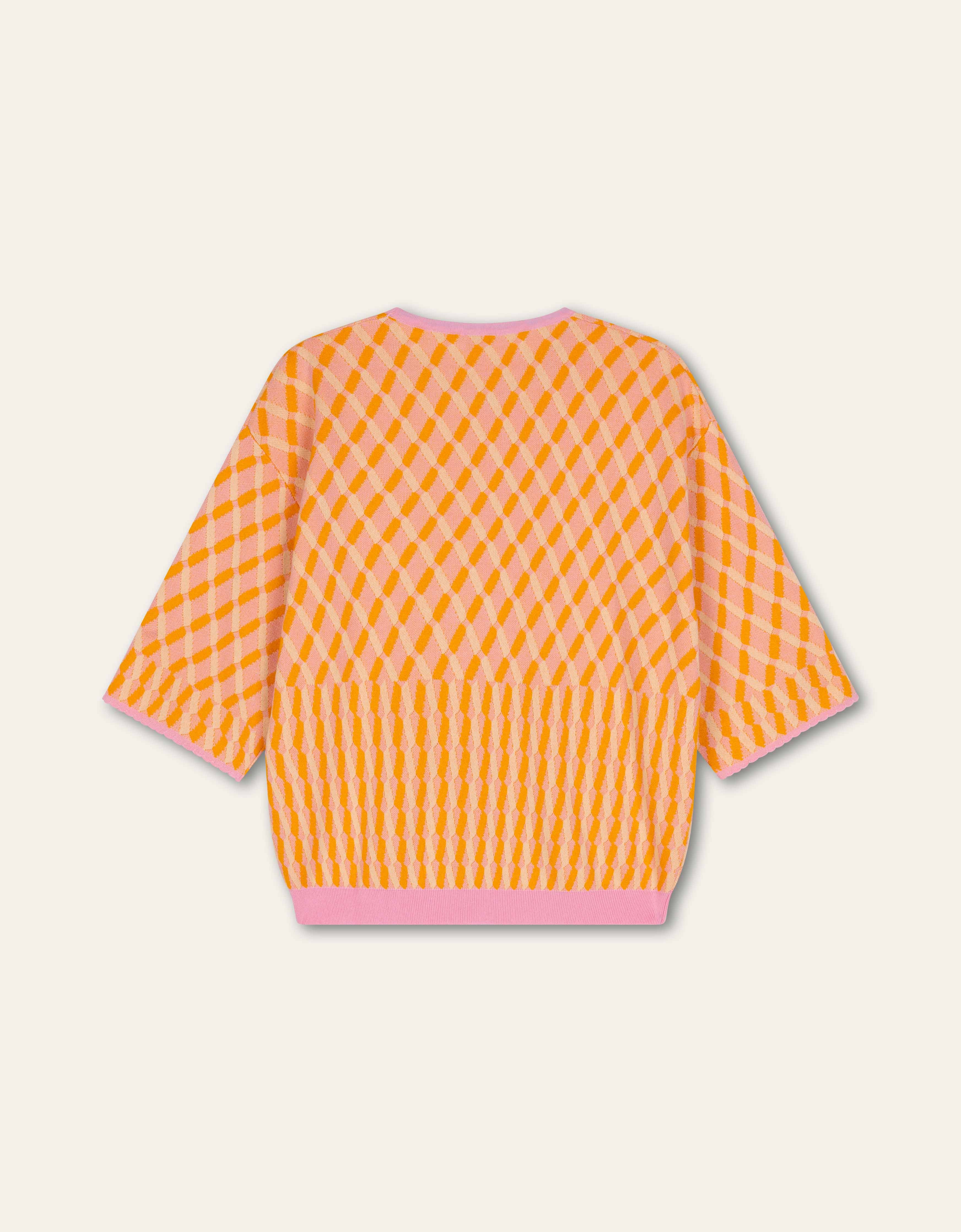 De relaxte fit maakt deze top uitermate geschikt voor ontspannen lentedagen. De verschillende steekpatronen boven en onder staan speels en uitnodigend. De mouwen hebben een driekwartlengte en zijn afgewerkt met schulpjes. We raden aan om knitwear opgevouwen in je kast te leggen en vooral niet op te hangen.