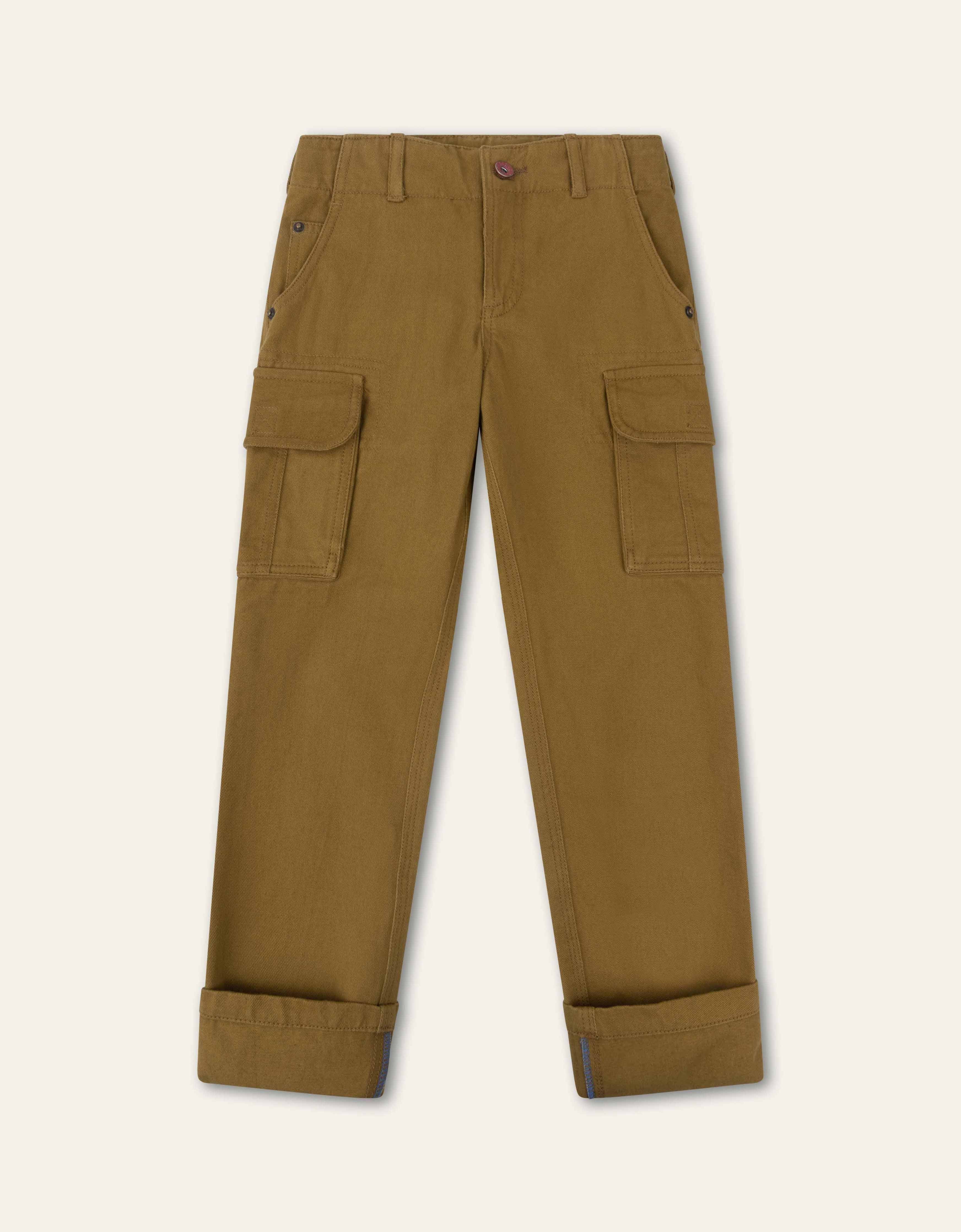 Altijd handig, een broek met lekker veel zakken voor al je schatten en vondsten. Deze sluit met knoopje en is van binnen te verstellen.
