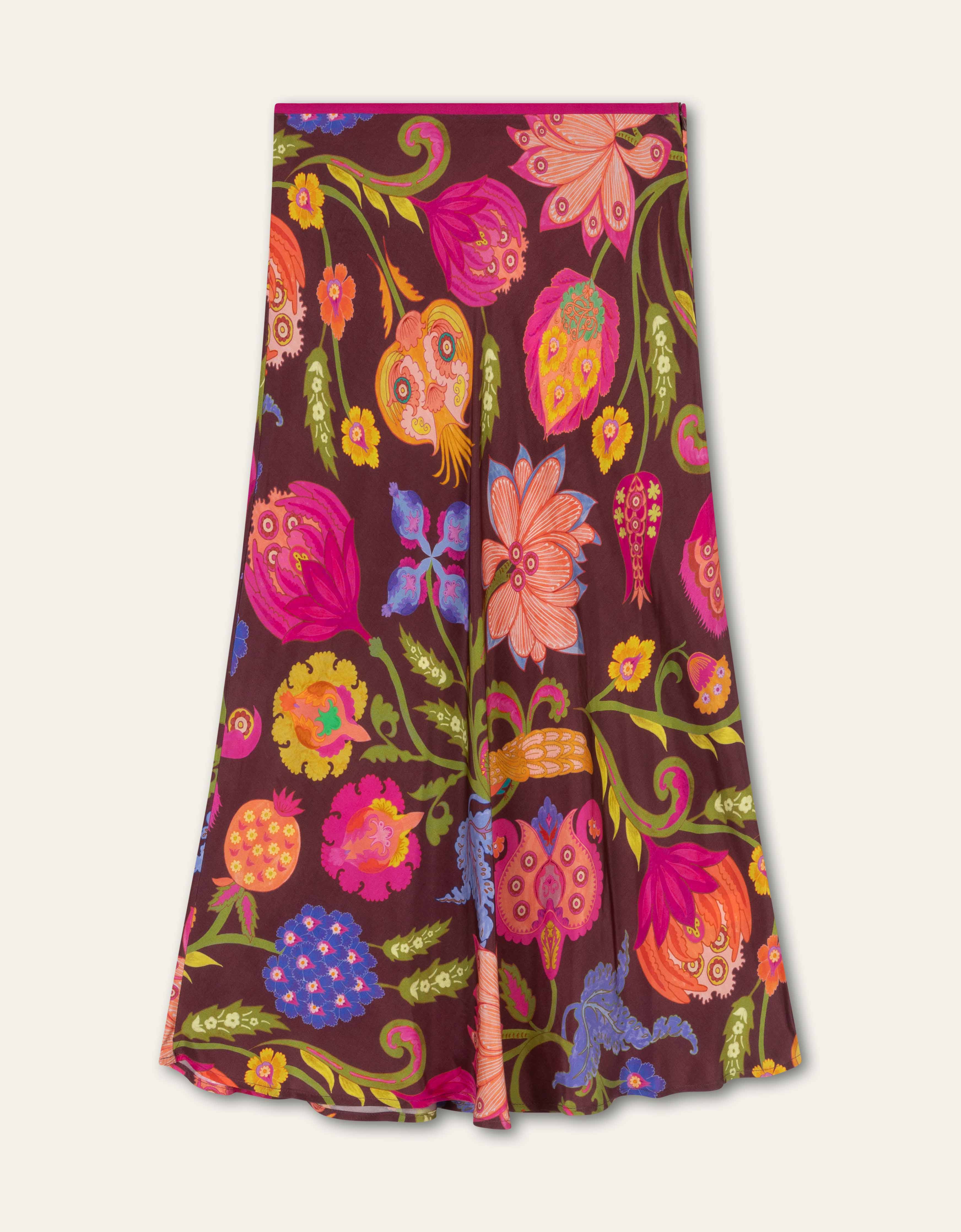 Deze midi rok heeft een blinde rits in de zij en een brede elastische tailleband voor een comfortabele fit. De Saphire Chintz print komt er prachtig op uit.