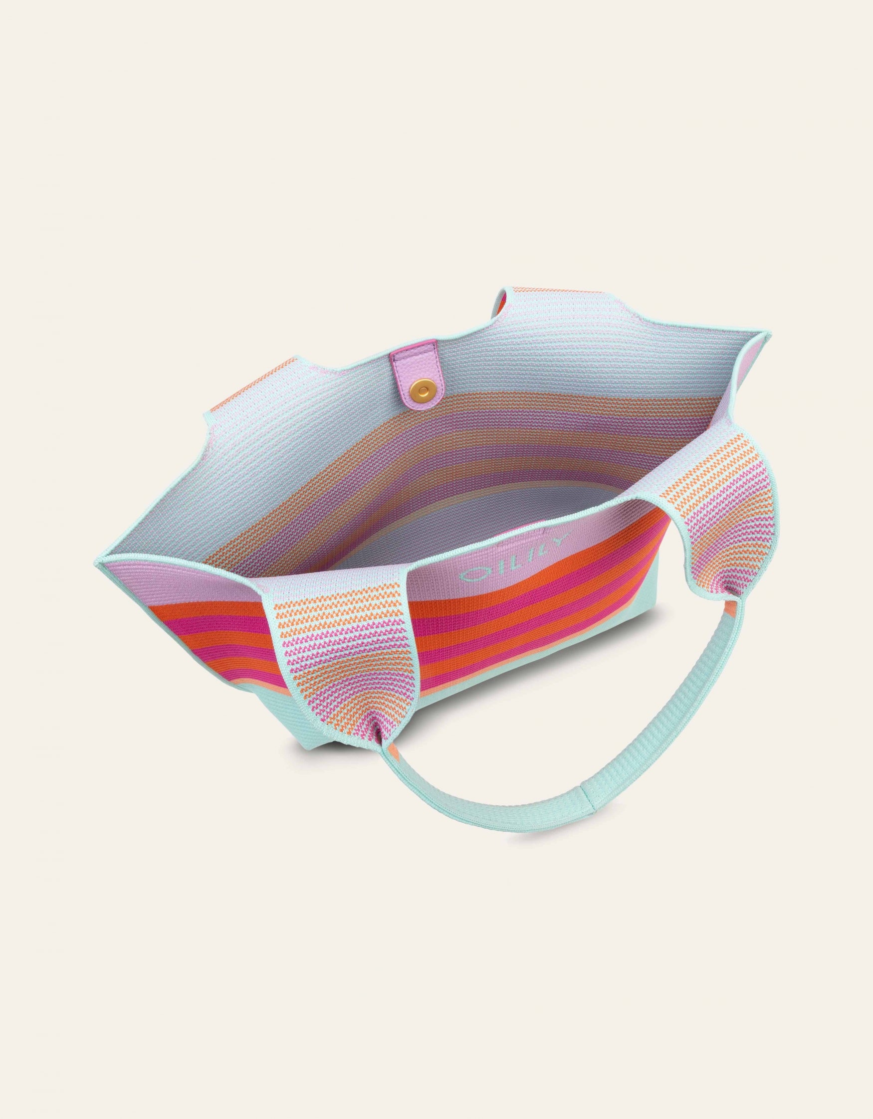 Stella is een shopper van een nieuw kaliber; gebreid van gerecycled polyester in een waanzinnige kleurencombinatie!